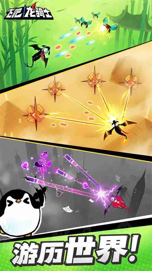 《飞吧龙骑士》是一款集合了飞行弹幕射击、、、、Roguelike要素和挂机养成的休闲手游,,,,极具创意的吞食子弹反击玩法,,,,突破传统飞行射击的刻板限制,,带来了独特的爽快清屏体验。。。。